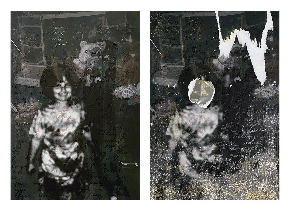I am exploring the quintessential family photo album and the memorialization of memory through imagery in manipulated digital images, artist books, and prints. Photographs are seen as a document of authenticity but are far from an accurate depiction of reality. My own childhood is documented in the typical style of the family snapshot – moments smiling and embracing, birthday parties, days at the beach, but the real truth was quite different. Throughout my work, I challenge the universal belief that a picture tells an unbiased story. By manipulating this perceived actuality, I am capable of creating my own truth by blending the realm of memory found in the family photograph with a deeper subtext of the concurrent experiences occurring when the document was created. The resulting images become something the viewer can relate to as representations of kinship, trauma, and forgiveness.